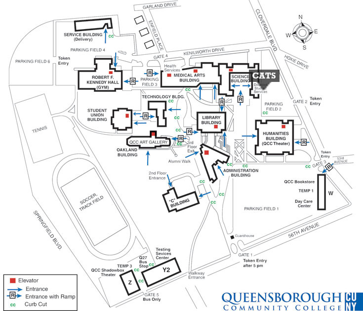 Directions by Car using the Cross Island Parkway South: Take either the Cross Island Parkway south to Northern Boulevard west (exit 31W). Merge onto Northern Boulevard and go straight until Springfield Boulevard. At the traffic light turn left onto Springfield Boulevard. Go straight until you reach 56th Avenue and make a left. The main entrance of Queensborough Community College is one block away on the left-hand side.